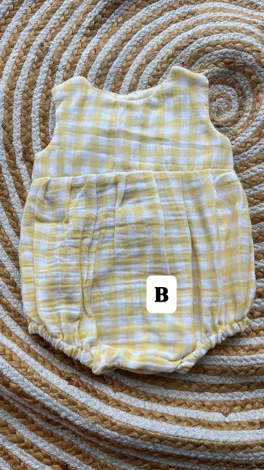 Bright yellow tissue fabric romper offering lightweight comfort with vibrant appeal.