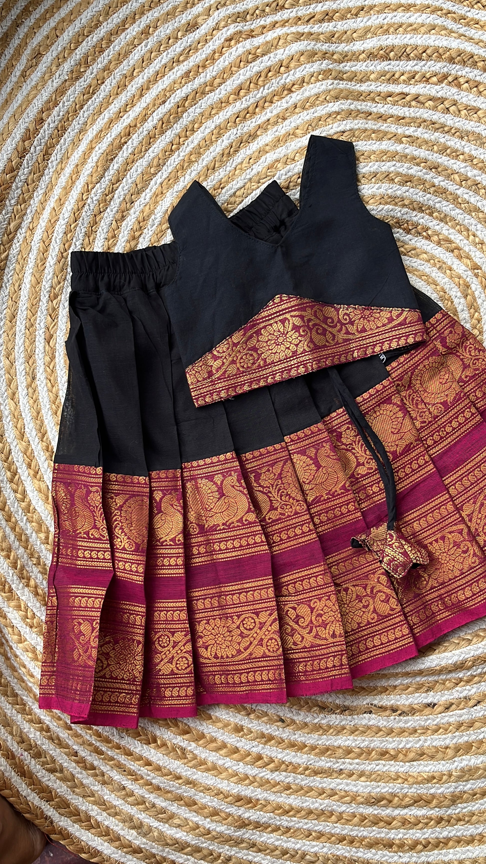 Beautiful color-blocked ethnic set combining vibrant green and purple for cultural celebrations.